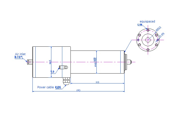 PCB-04860 with 0.5 kw and 60,000 rpm High frequency Spindle with Ultra high speed ceramic bearings has a robust construction and is highly précised and is in accordance with set industrial standards.
